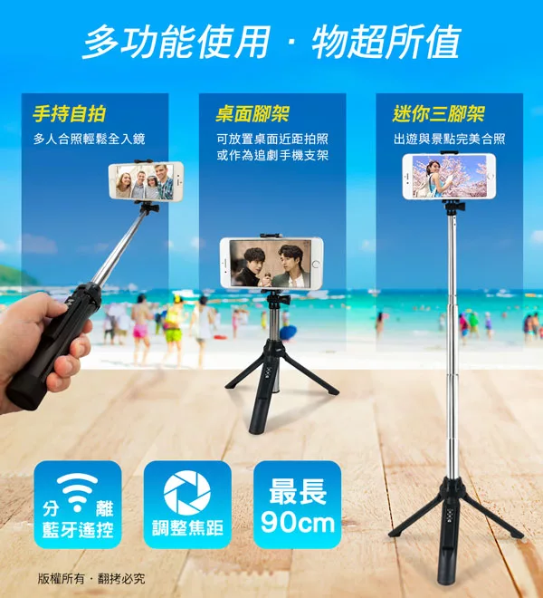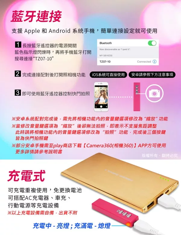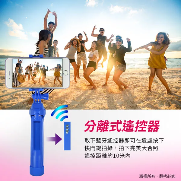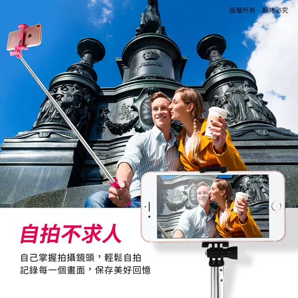 使用手機藍牙快門遙控器即可輕鬆拍出漂亮的自拍照。免組裝簡單