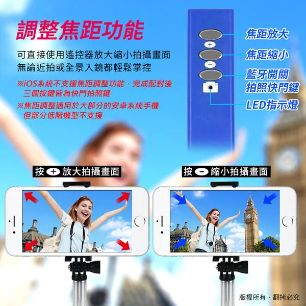 ※藍牙遙控器的焦距調整功能,僅支援Android系統,不支援iOS系統