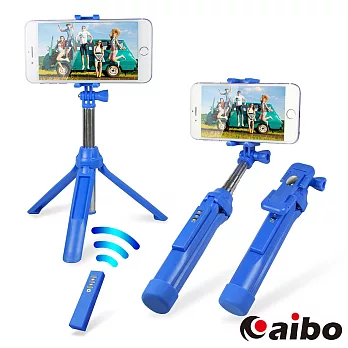 aibo TZ07-10 手持-三腳架 無線藍牙自拍桿(分離式遙控器)藍色