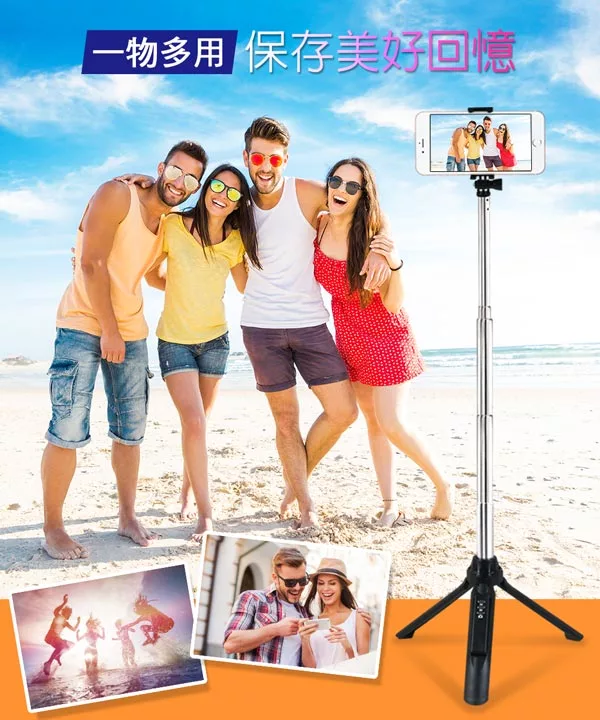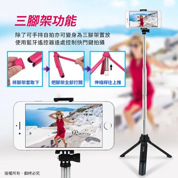 不僅是自拍桿,還可變身為三腳架,將握把部份展開